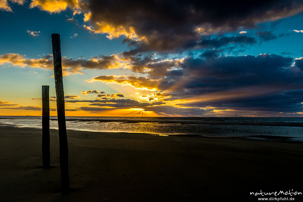 Sonnenuntergang über dem Meer, Hohes Riff, Borkum, Deutschl ...