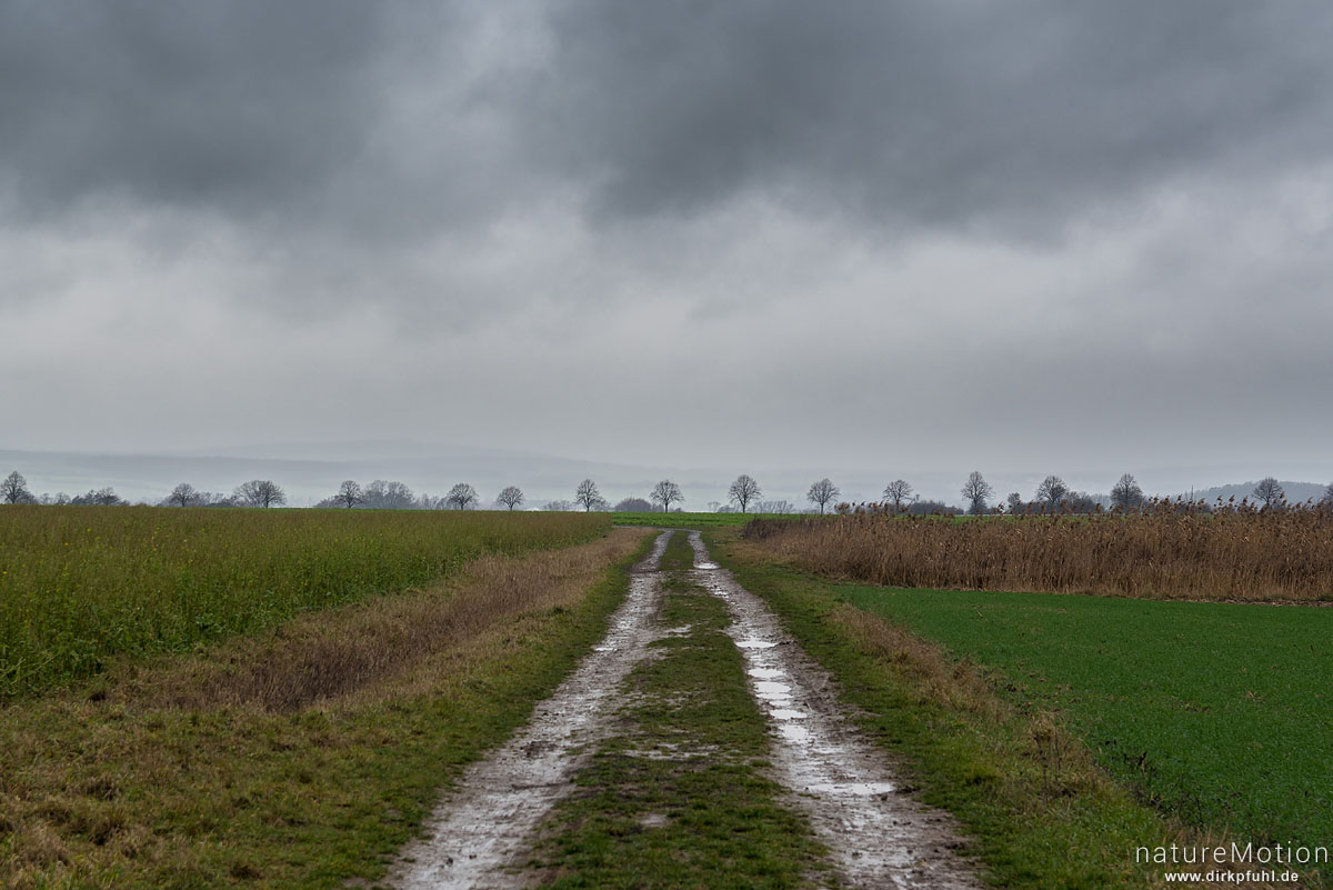 Regenwolken über Agrarlandschaft, Feldweg, Gartemühle, Gö ...