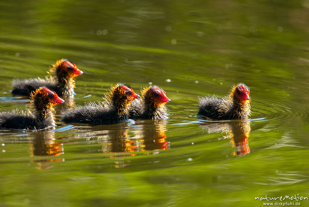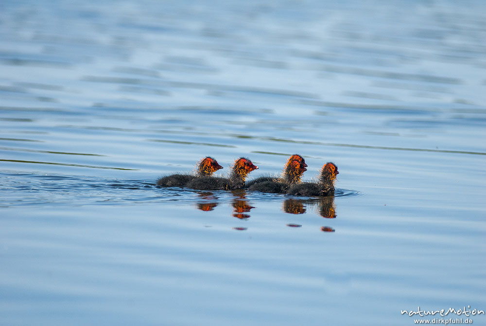 Bläßhuhn, Bläßralle, Fulica atra, Rallidae, Küken mit r ...