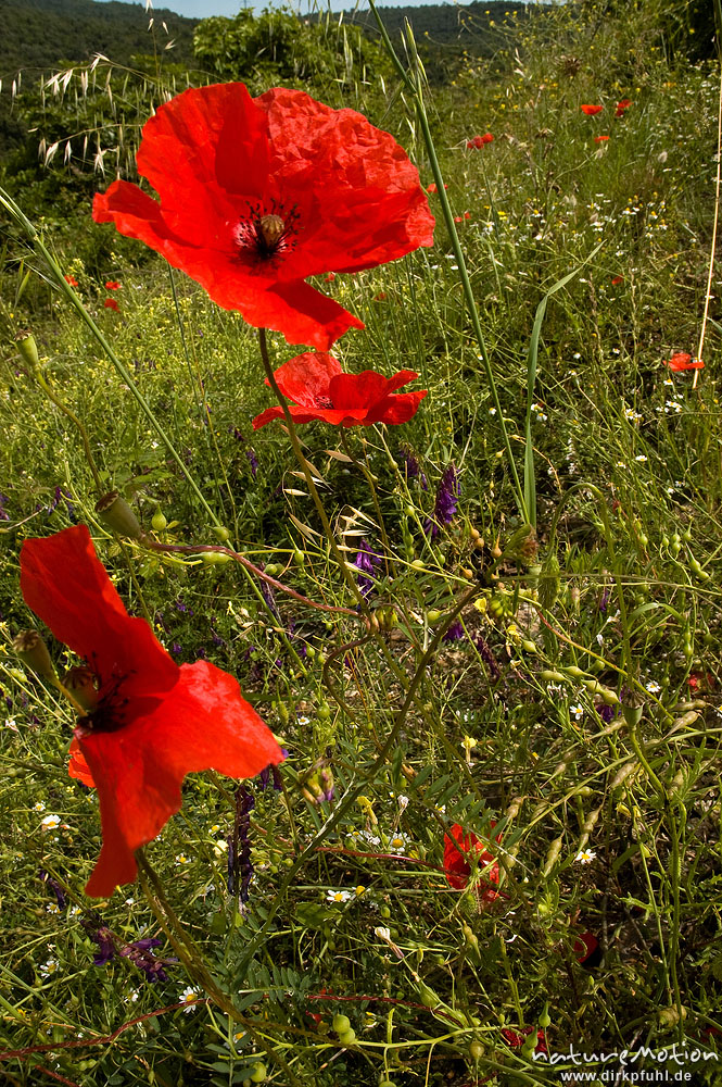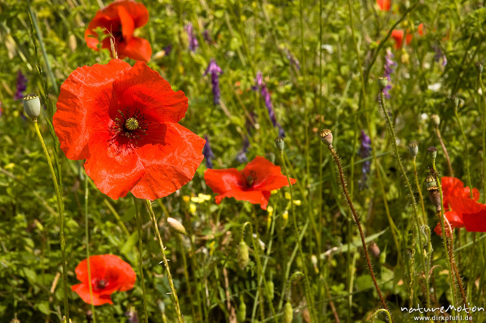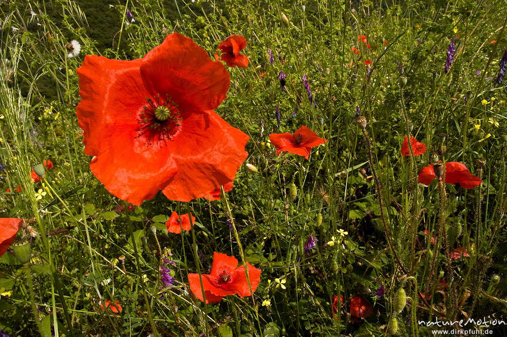 Klatsch-Mohn, Papaver rhoeas, Papaveraceae, inmitten bunter ...