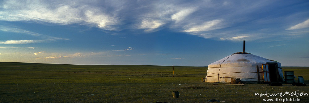 Jurte (Ger) im Abendlicht, zwischen Ulaanbaatar und Dalanzad ...