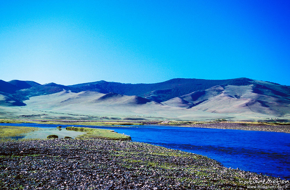 Tal des Orchon-Flu?, kiesige Ufer und bergr?cken ,