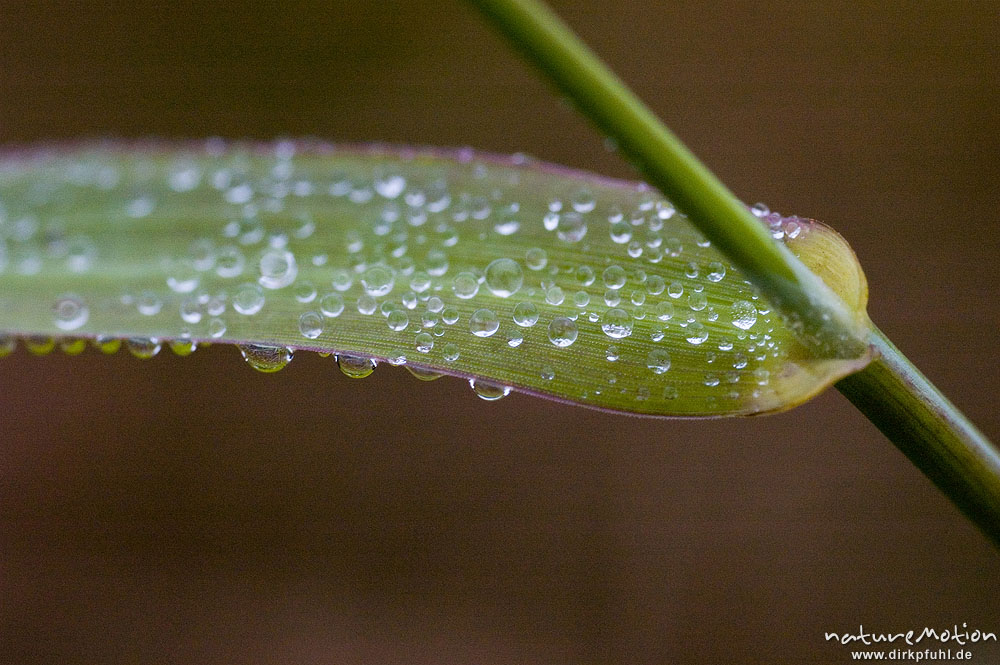 Tautropfen auf Grasblatt, Tripkenkuhle Göttingen, Deutschland