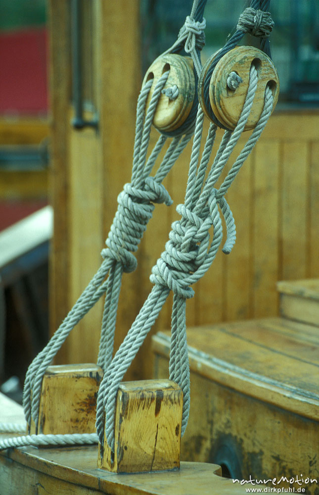 Tauwerk, Holzboote, alter Hafen von Born, Darß, Zingst, Deutschland