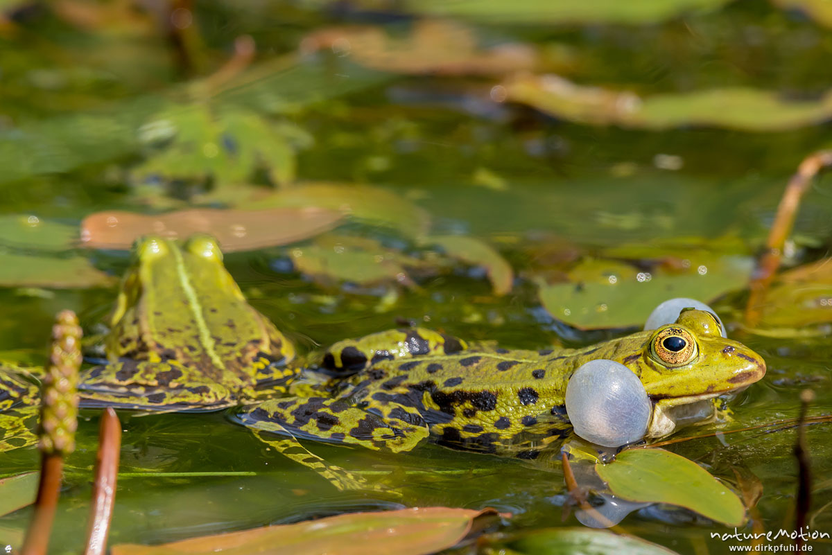 Teichfrosch, Rana esculenta (Pelophylax kl. esculentus, Pelophylax "esculentus"), Echte Frösche (Ranidae), rufendes Männchen, Schallblasen, Aller botanischer Garten, ,