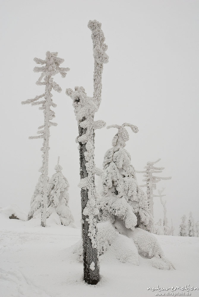 tief verschneiter Fichtenwald, vereiste Fichten, Haus Kühnenburg, Harz, Deutschland