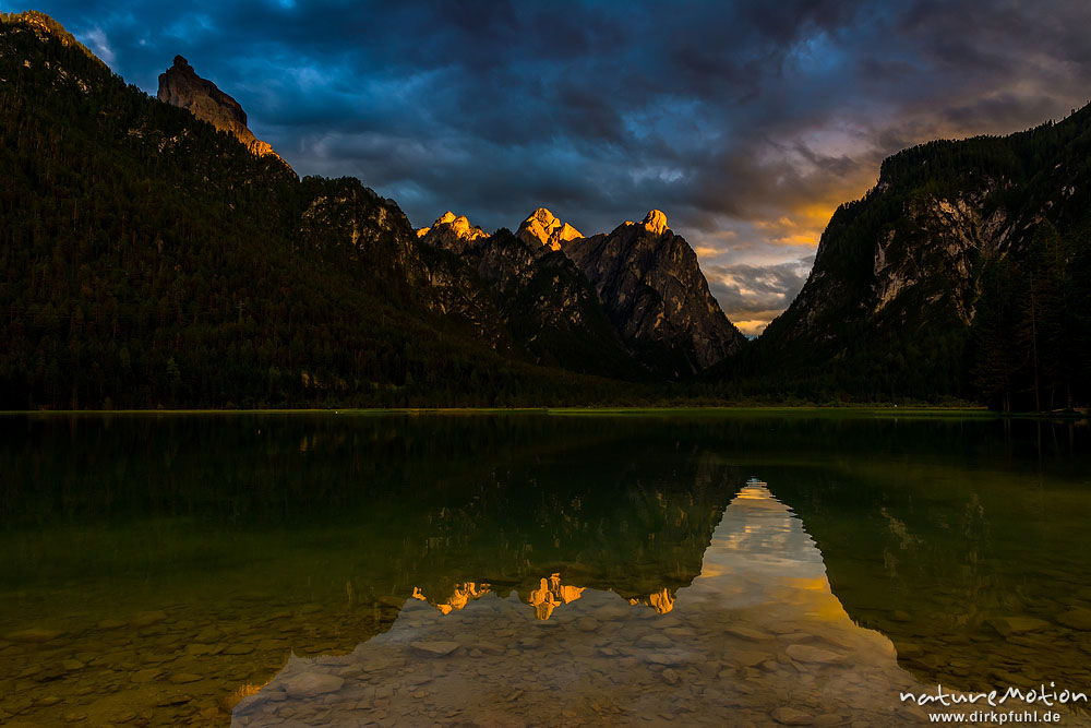 Toblacher See, Sonnenuntergang und Alpenglühen, Toblach, Italien