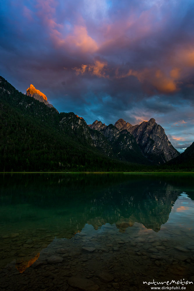 Toblacher See, Sonnenuntergang und Alpenglühen, Toblach, Italien