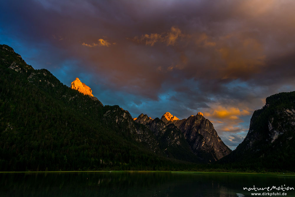 Toblacher See, Sonnenuntergang und Alpenglühen, Toblach, Italien