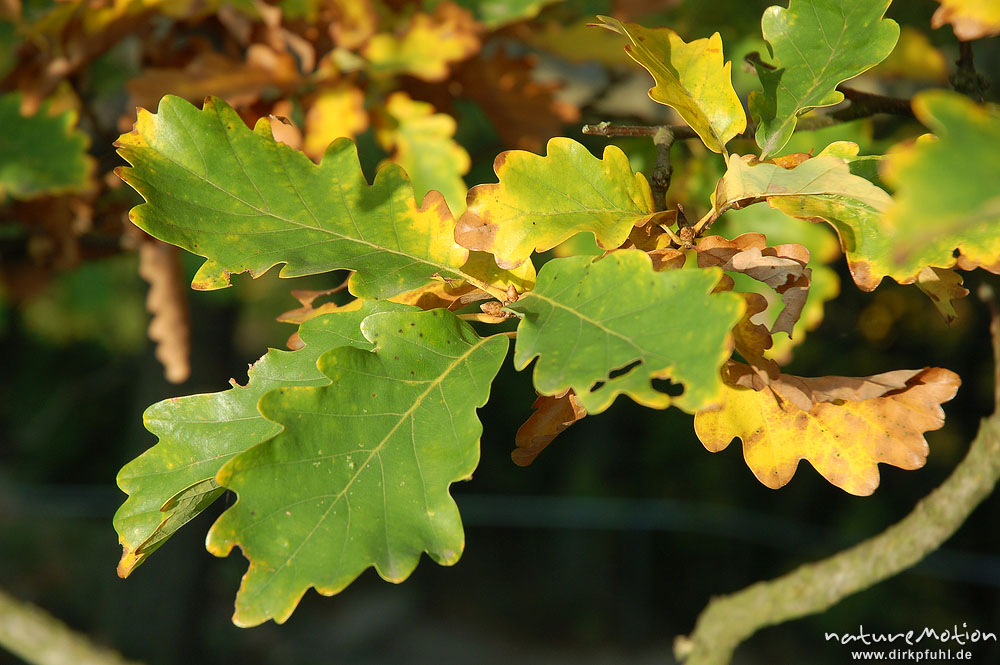 Traubeneiche, Quercus petraea, Fagaceae, Blätter mit Herbstfärbung, Bodetal, Bodetal, Deutschland