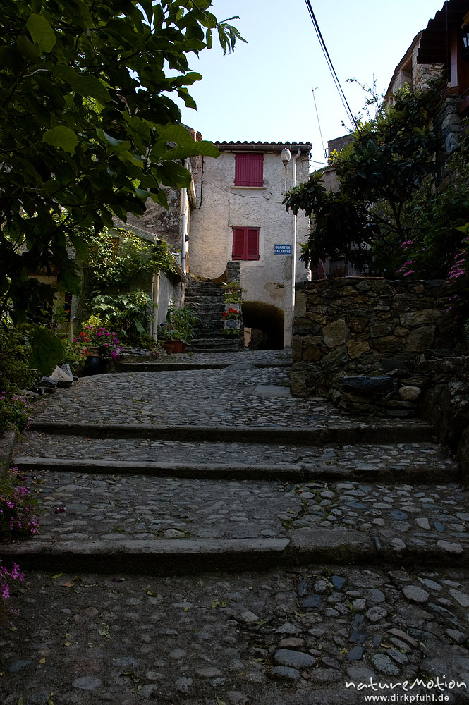 Treppen, gepflasterte Gasse, Belvedere, Corte Korsika, Frankreich