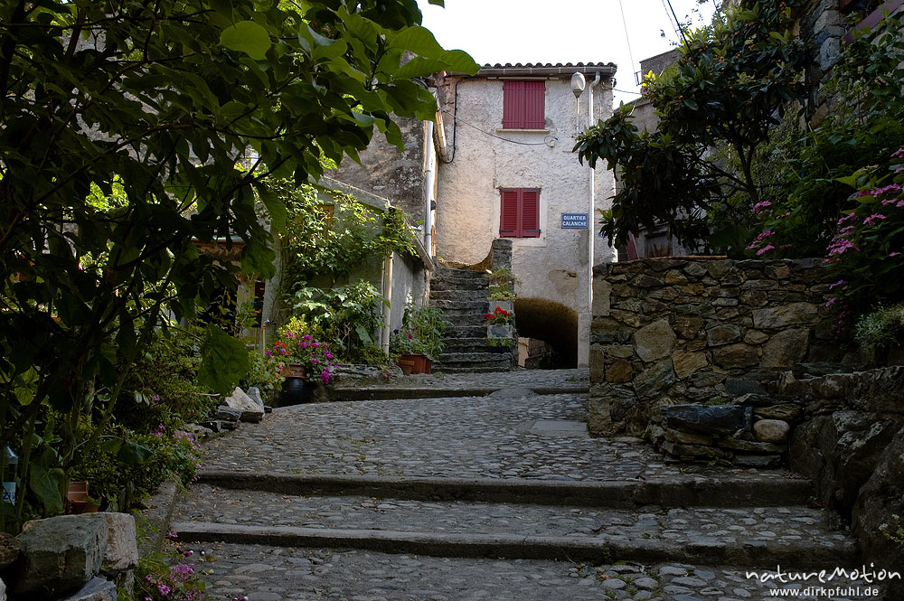 Treppen, gepflasterte Gasse, Belvedere, Corte Korsika, Frankreich