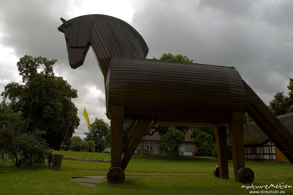 Trojanisches Pferd, Spielgerüst mit Rutsche vor dem Schliemann-Museum in Ankershagen Ankershagen, Deutschland