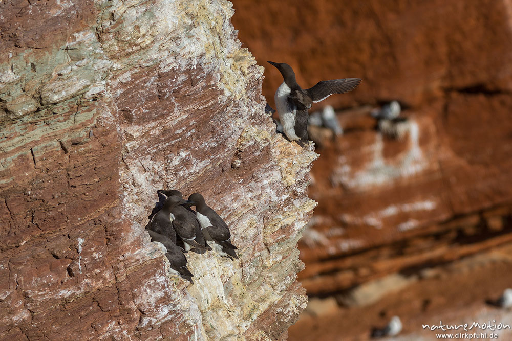 Trottellumme, Uria aalge, Alkenvögel (Alcidae, Alttiere auf ihren Brutplätzen im Fels, Lummenfelsen, Helgoland, Deutschland