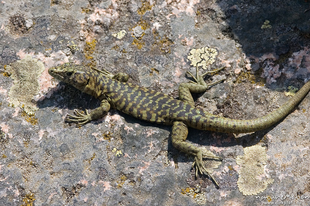 Tyrrhenische Gebirgseidechse, Lacerta bedriagae, Archaeolacerta bedriagae, Lacertidae, sich sonnend, Piscia di Gallo, Korsika, Frankreich