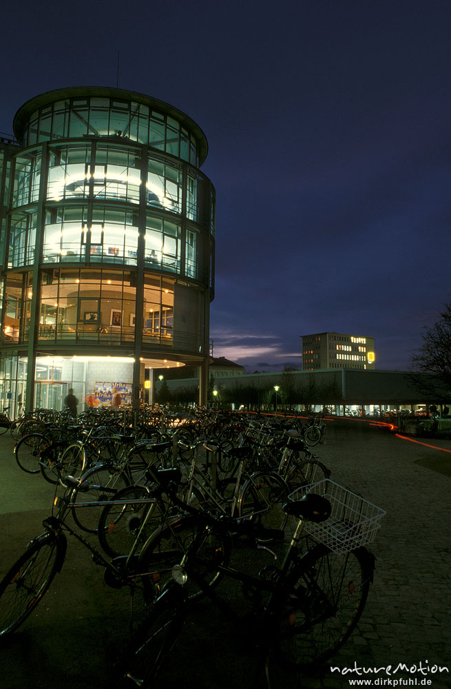 Universitätsbibliothek Göttingen, Fassade bei Nacht, Göttingen, Deutschland
