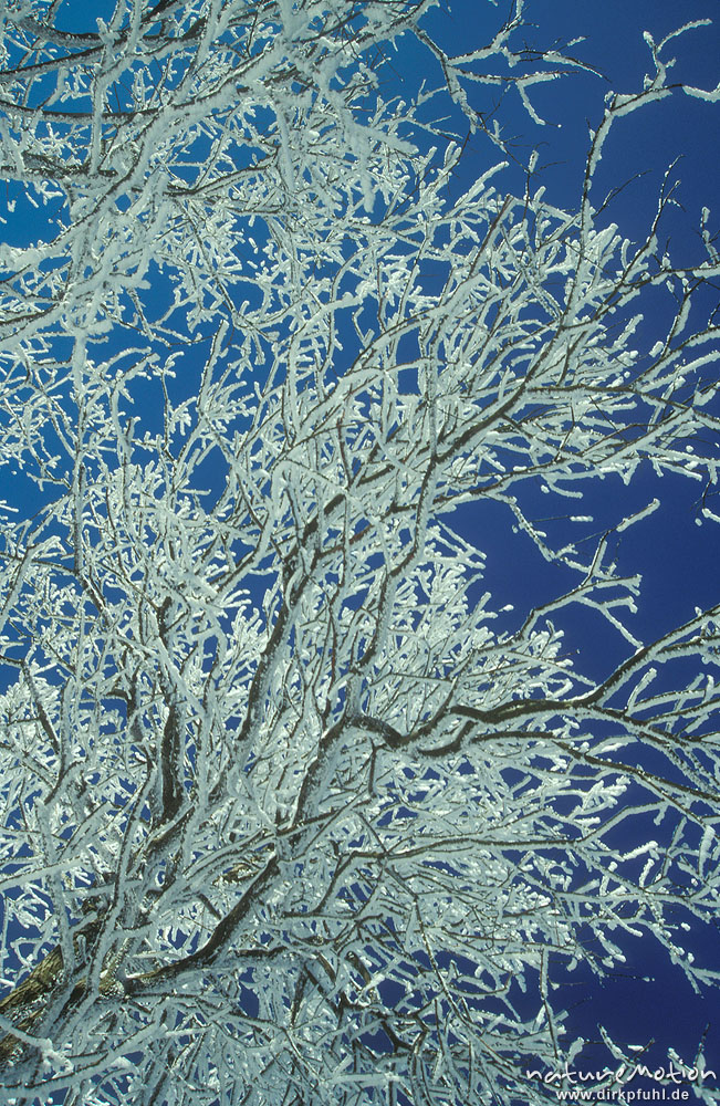 vereiste Zweige vor blauem Himmel, Muster, Torfhaus, Torfhaus, Deutschland