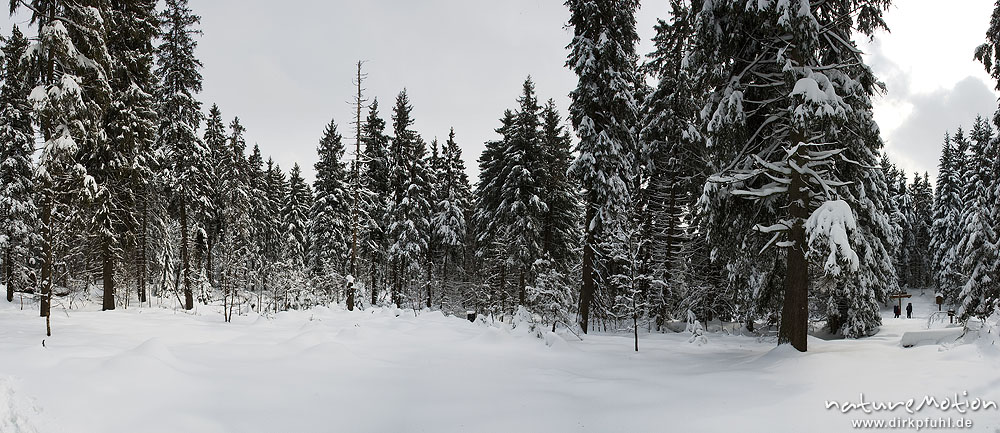 verschneite Fichten, Winterwald am Oderteich, Harz, Deutschland