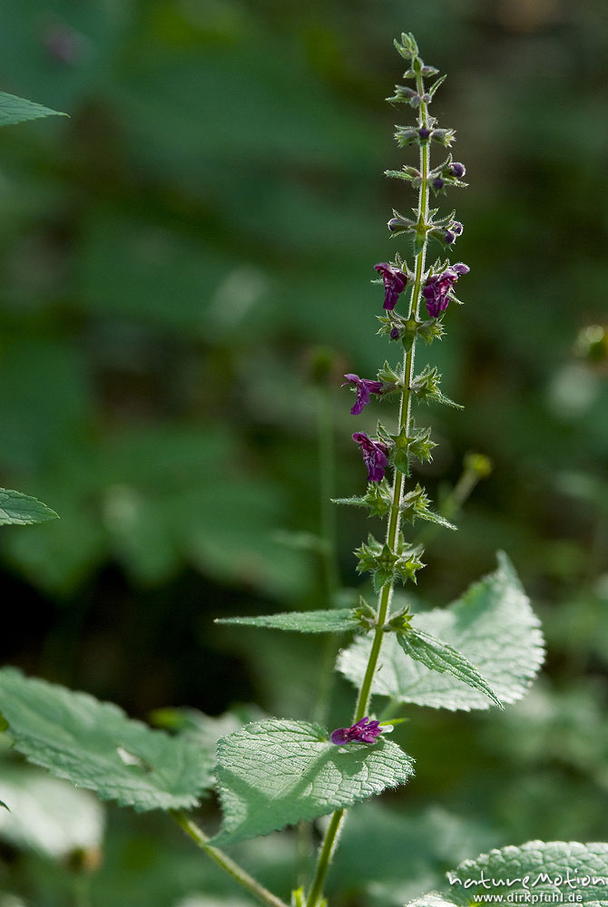 Wald-Ziest, Stachys sylvatica, Lippenblütler (Lamiaceae), Blütenstand und obere Laubblätter, Buchenwald, Göttinger Wald, A nature document - not arranged nor manipulated, Göttingen, Deutschland