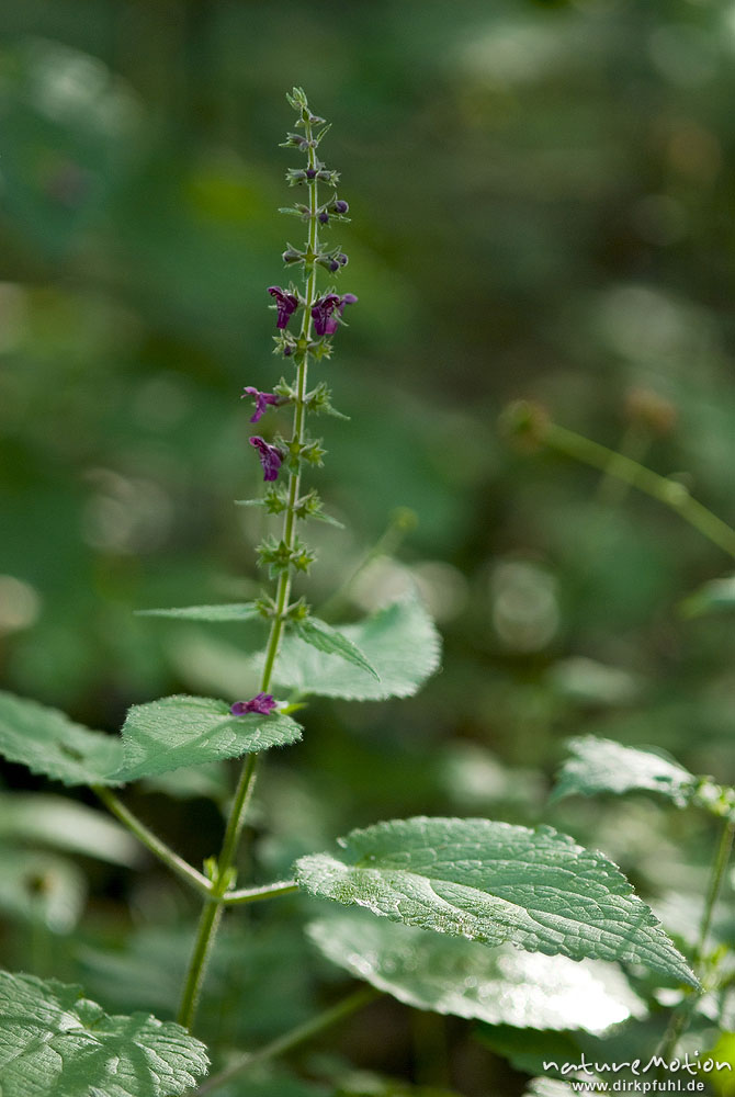 Wald-Ziest, Stachys sylvatica, Lippenblütler (Lamiaceae), Blütenstand und obere Laubblätter, Buchenwald, Göttinger Wald, A nature document - not arranged nor manipulated, Göttingen, Deutschland