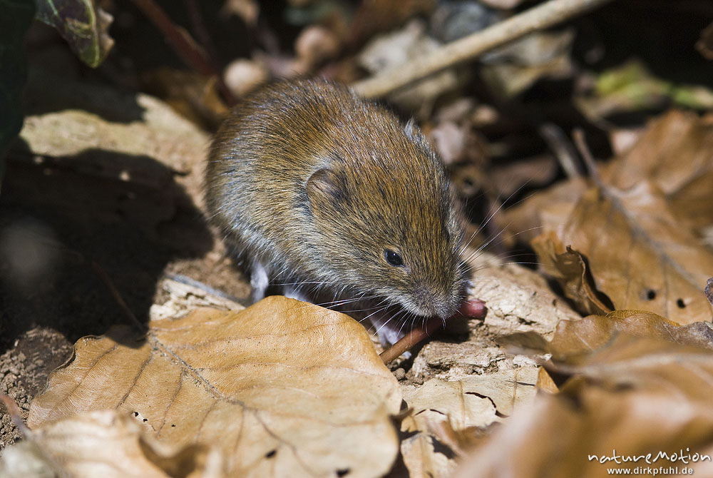 Waldmaus, Apodemus sylvaticus, Muridae, Tier zwischen Laubstreu am Waldboden, Göttinger Wald, A natu, Göttingen, Deutschland