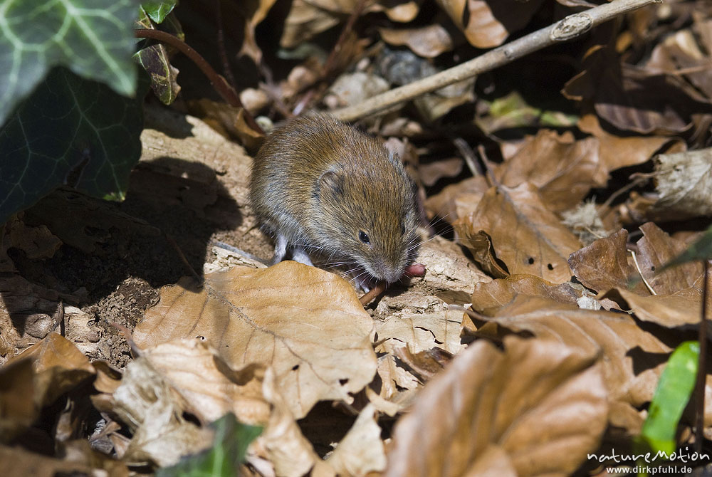 Waldmaus, Apodemus sylvaticus, Muridae, Tier zwischen Laubstreu am Waldboden, Göttinger Wald, A natu, Göttingen, Deutschland