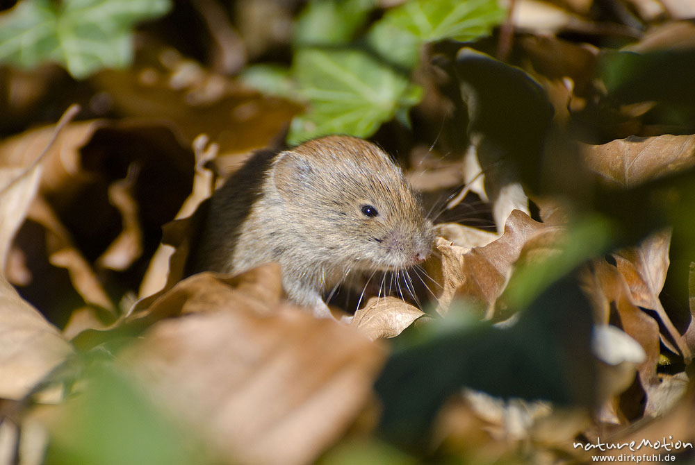 Waldmaus, Apodemus sylvaticus, Muridae, Tier zwischen Laubstreu am Waldboden, Göttinger Wald, A nature document - not arranged nor manipulated, Göttingen, Deutschland
