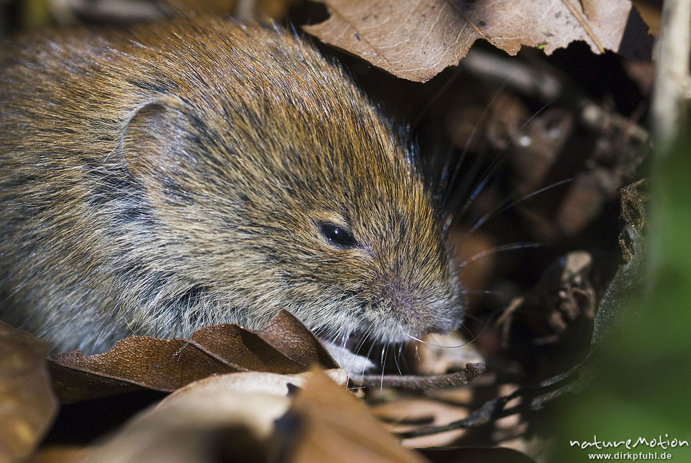 Waldmaus, Apodemus sylvaticus, Muridae, Tier zwischen Laubstreu am Waldboden, Göttinger Wald, A nature document - not arranged nor manipulated, Göttingen, Deutschland