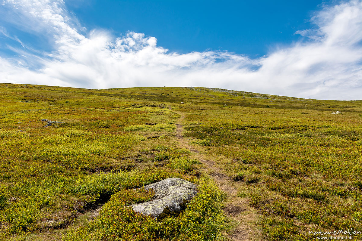 Wanderweg, Heidelandschaft an den Hängen des Mont Lozère, Florac, Frankreich
