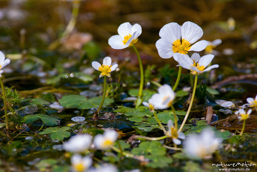 Wasser-Hahnenfuß, Ranunculus aquatilis, Ranunculaceae, blühende Pflanzen in Wiesentümpel, Tripkenpfuhl, Göttinger Wald, A nature document - not arranged nor manipulated, Göttingen, Deutschland