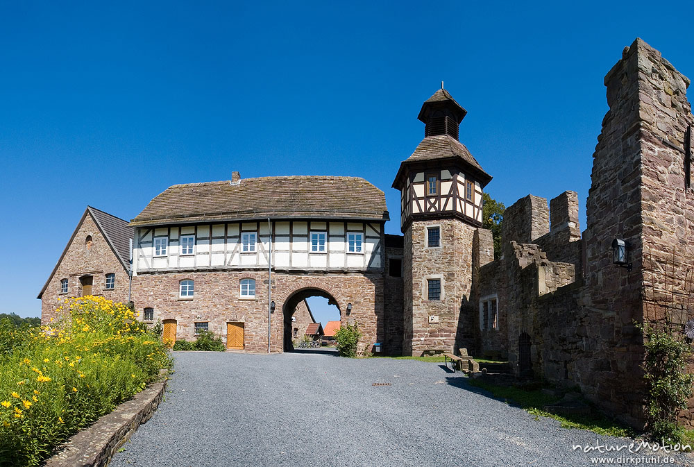 Wasserschloss Wülmersen, restauriertes Hauptgebäude und Mauern der anliegenden Ruine, Wasserschloss Wülmersen,