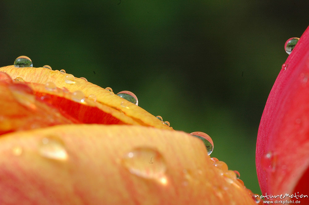 Wassertropfen auf Tulpenblüte, Garten Göttingen, Deutschland