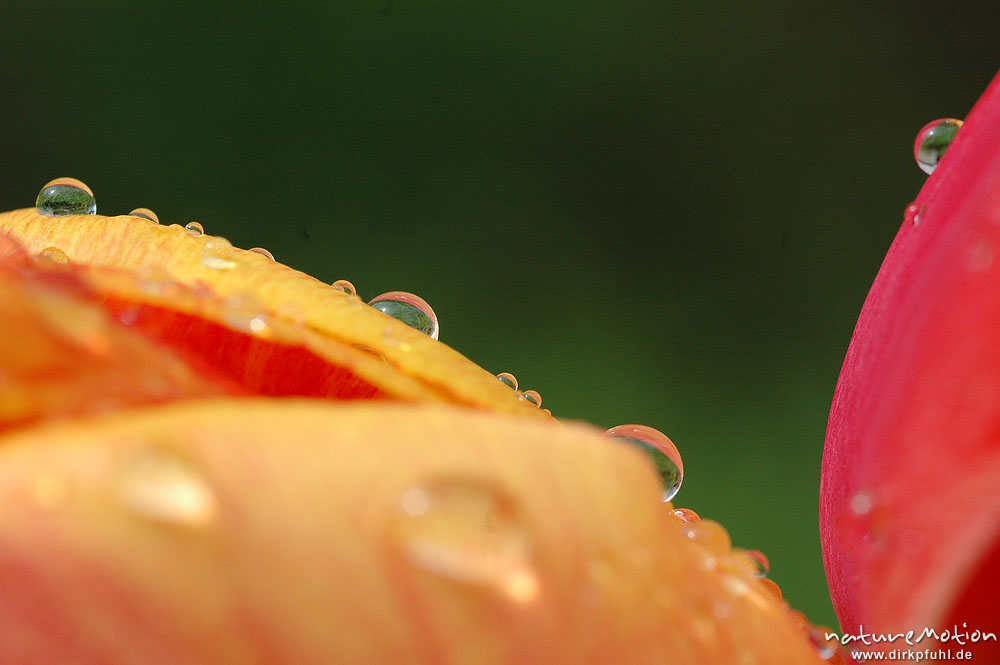 Wassertropfen auf Tulpenblüte, Garten Göttingen, Deutschland