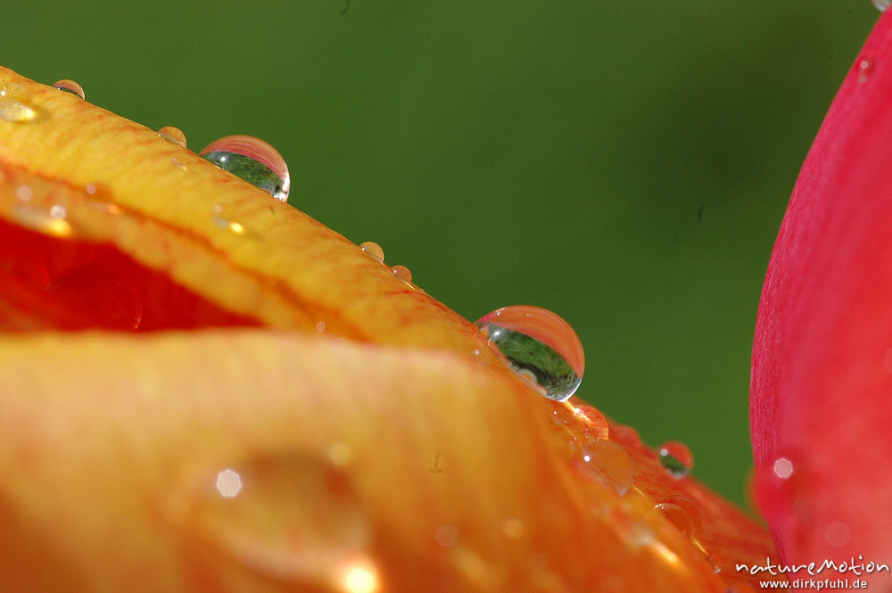 Wassertropfen auf Tulpenblüte, Garten Göttingen, Deutschland