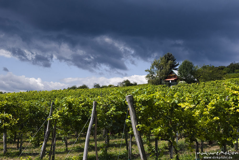 Weinrebe, Vitis vinifera, Vitaceae, Weinberg und Regenwolken, Wien Vienna, Östereich