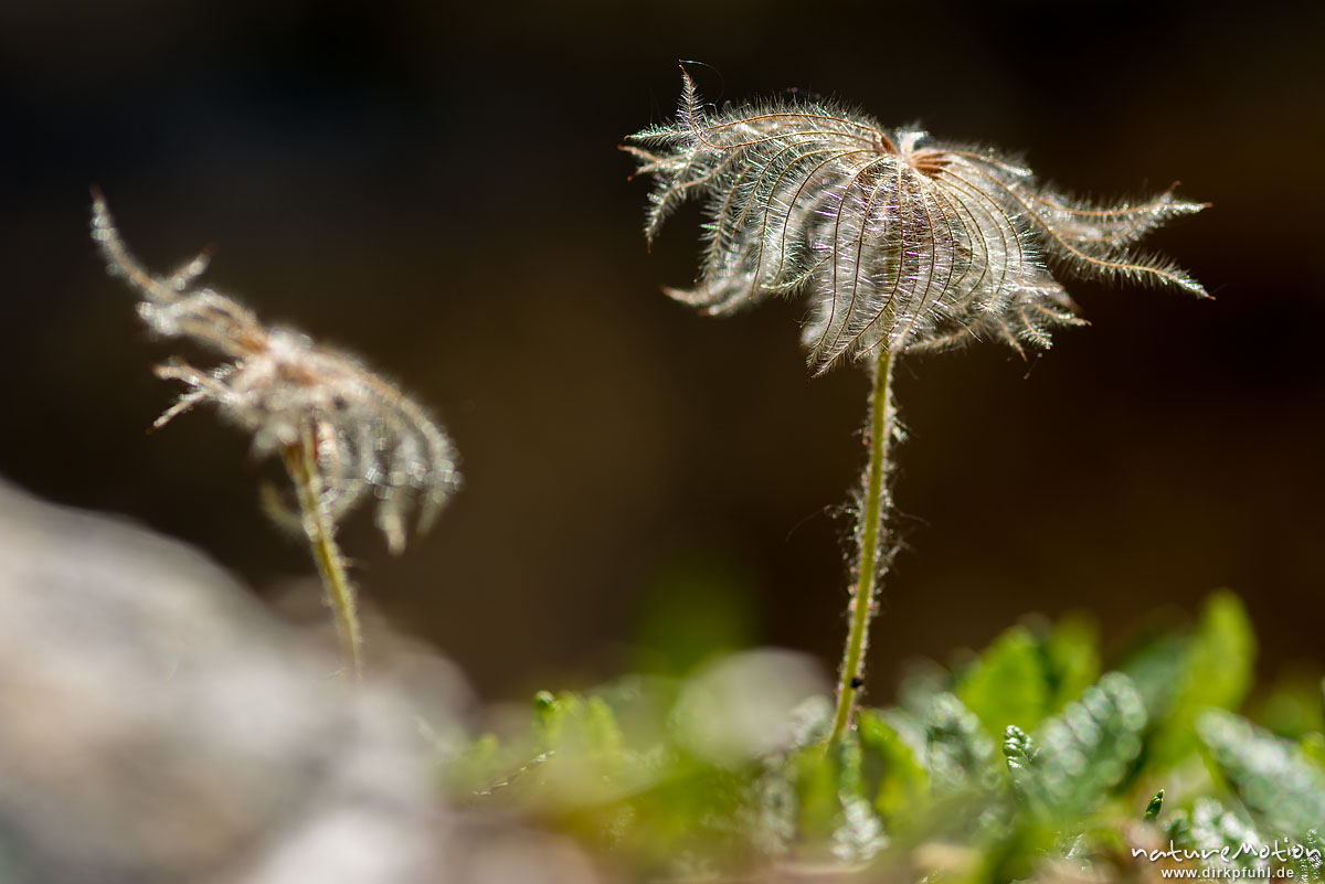 Weiße Silberwurz, Dryas octopetala, Rosengewächse (Rosaceae, Fruchtstand, Achäne, Felssturz Labyrinth, Latemar, Karersee, Südtirol, Italien