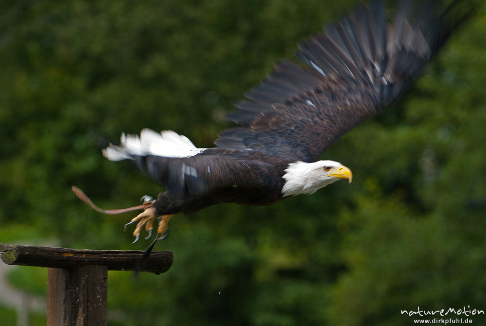 Weißkopfseeadler, Haliaeetus leucocephalus, Habichtartige (Accipitridae), Flugshow Tierpark Sababurg, captive, Sababurg, Deutschland