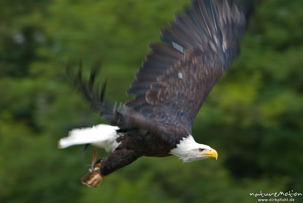 Weißkopfseeadler, Haliaeetus leucocephalus, Habichtartige (Accipitridae), Flugshow Tierpark Sababurg, captive, Sababurg, Deutschland