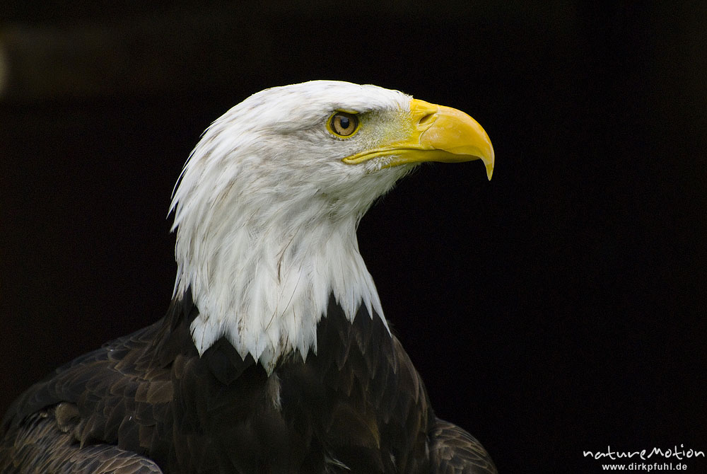 Weißkopfseeadler, Haliaeetus leucocephalus, Habichtartige (Accipitridae), Kopf, Falknerei Tierpark S, Sababurg, Deutschland