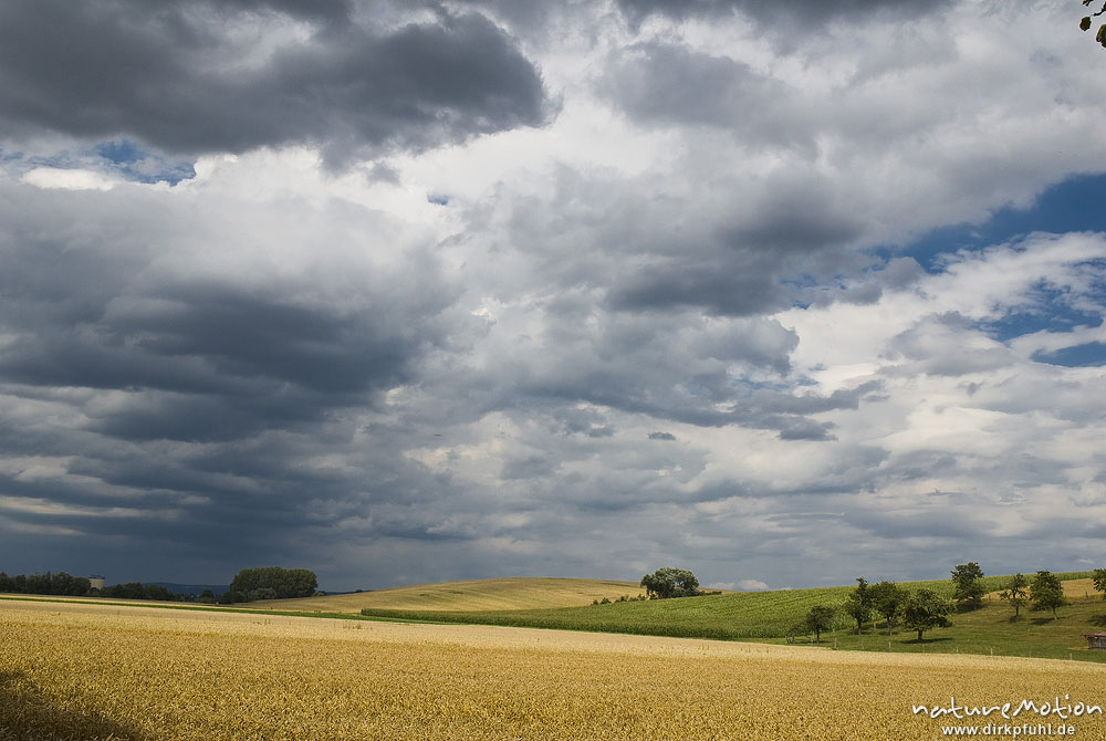 Weizen, Triticum aestivum, Poaceae, Weizenfeld kurz vor der Ernte, Wolken, Deutschland