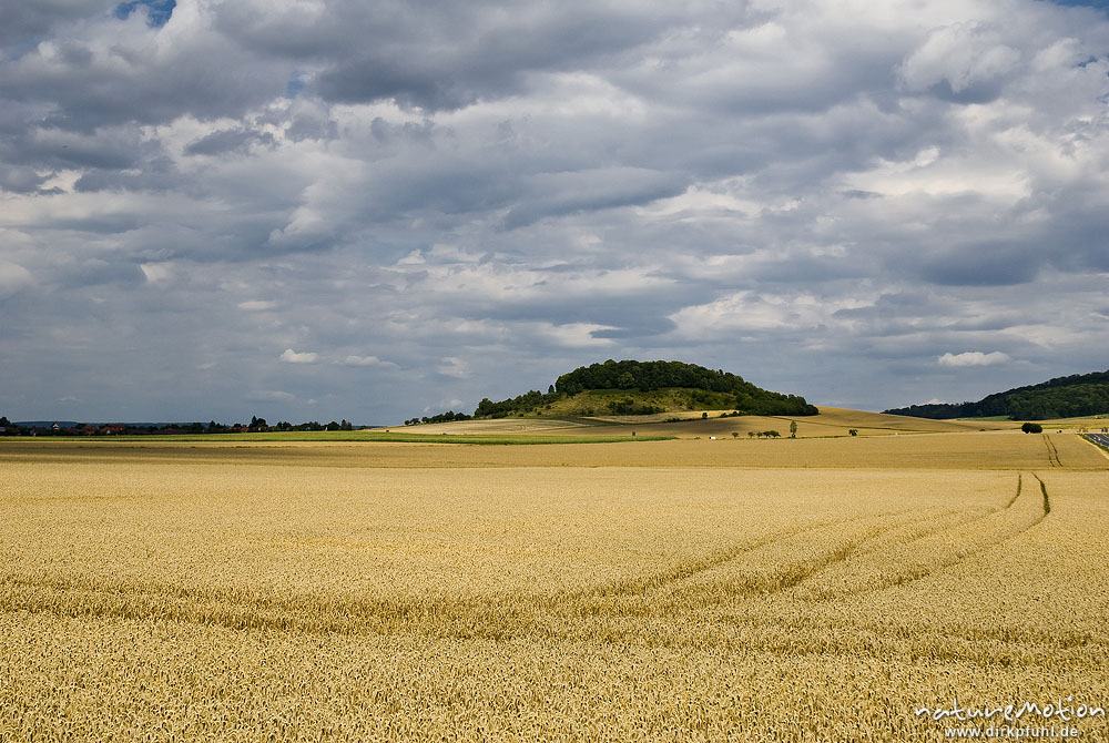Weizenfeld kurz vor der Ernte, Fahrspuren, Einzelberg, Friedland, Deutschland