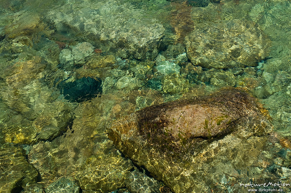 Wellen auf Wasseroberfläche, Steine, Farbspiel, Tal des Cavo Korsika, Frankreich