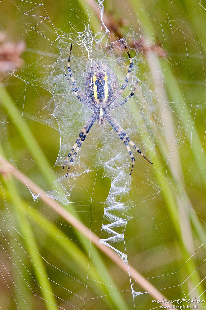 Wespenspinne, Argiope bruenechii, Araneidae, Tier im Netz, Stabiliment, Tripkenkuhle Göttingen, Deutschland