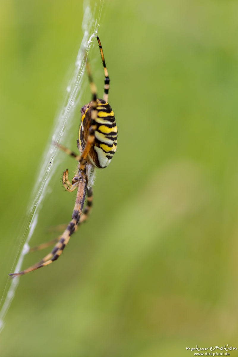 Wespenspinne, Argiope bruenechii, Echte Radnetzspinnen (Araneidae), Weibchen im Netz, Kerstlingeröder Feld, Göttingen, Deutschland