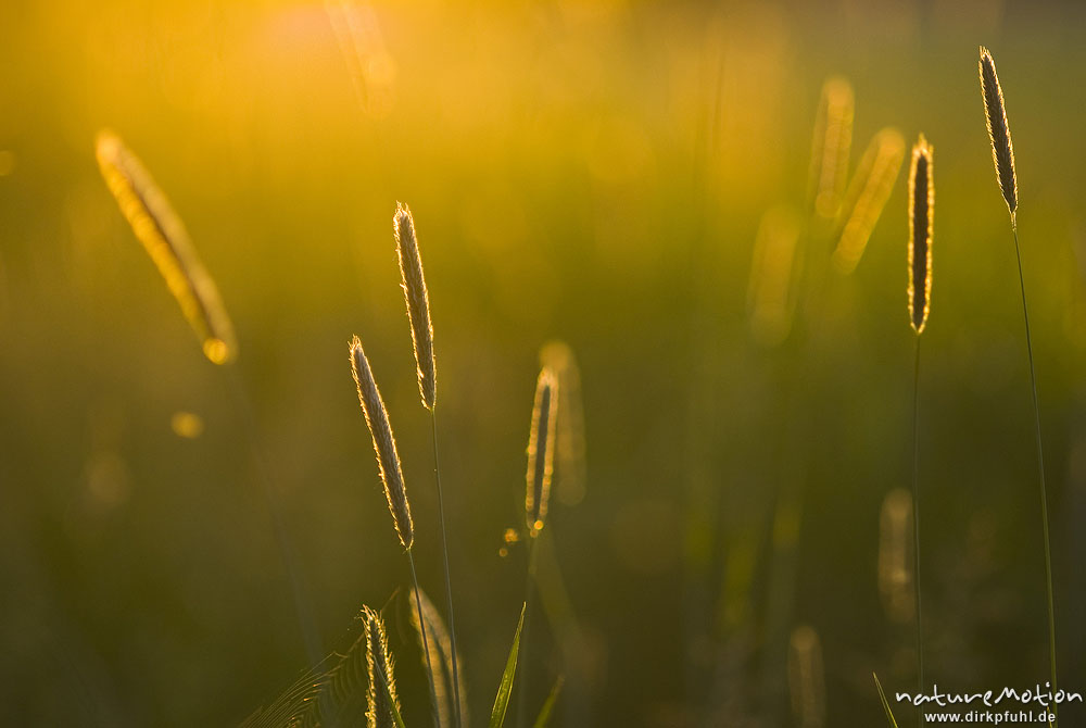 Wiesen-Fuchsschwanz, Alopecurus pratensis, Poaceae, Ähren glänzen golden im letzten Abendlicht, Bibe, Gartow (Wendland), Deutschland