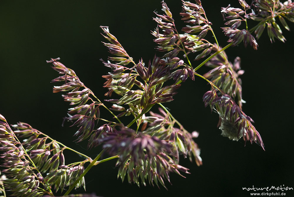 Wiesen-Rispengras, Poa pratensis, Poaceae, Blütenstand mit offenen Blüten, Uferzone Quellteich Kerstlingeröder Feld, Göttingen, Deutschland