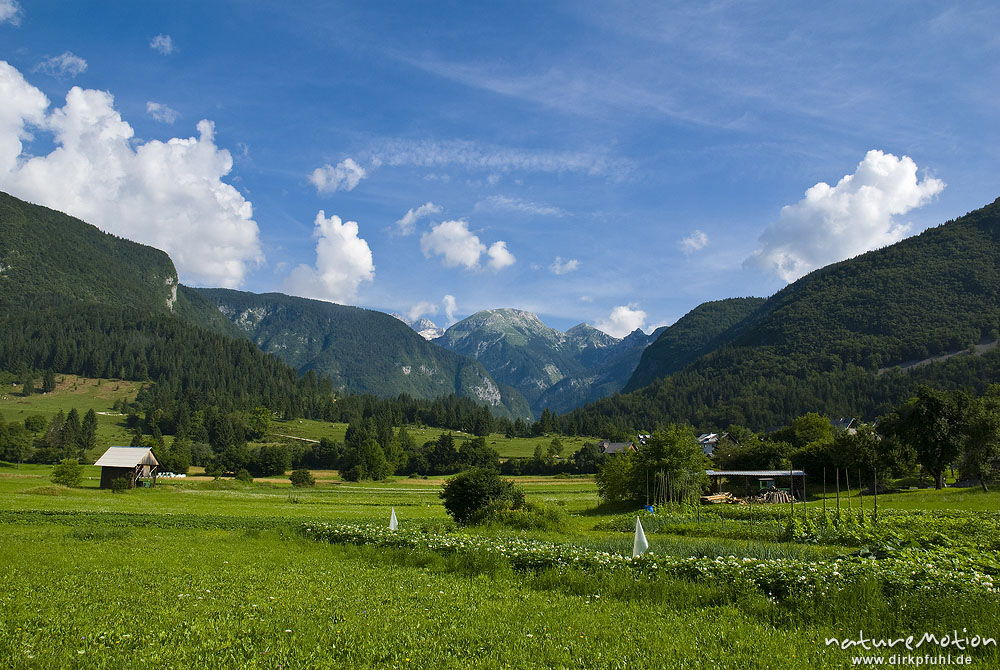 Wiesen vor Bergkulisse, Stara Fucina, Slowenien