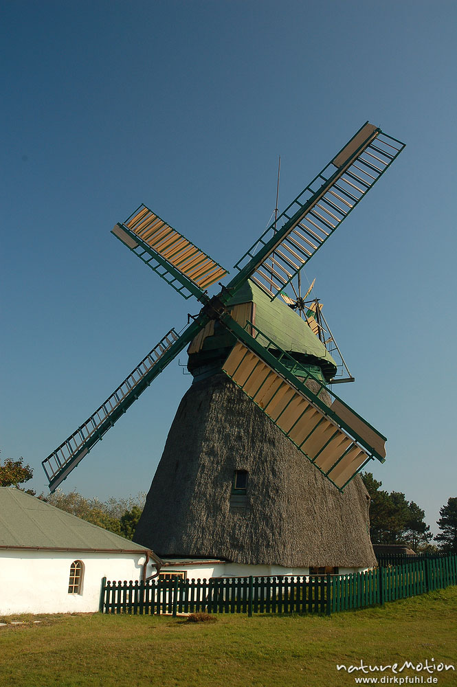 Windmühle, restauriert, reetgedeckt, Heimatmuseum von Nebel, Amrum Amrum, Deutschland