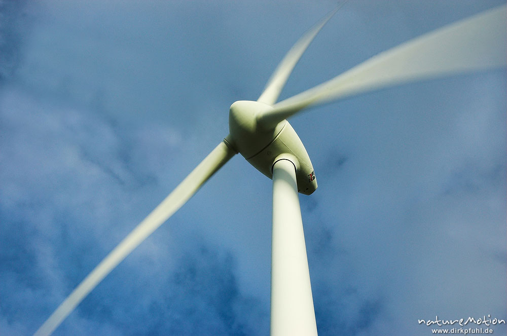 Windrad vor bewölktem Himmel, Diemarden, Göttingen, Deutschland