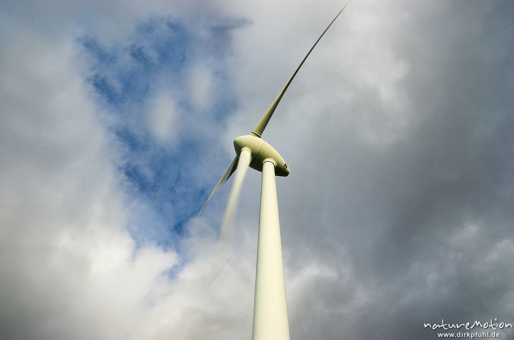 Windrad vor bewölktem Himmel, Diemarden, Göttingen, Deutschland